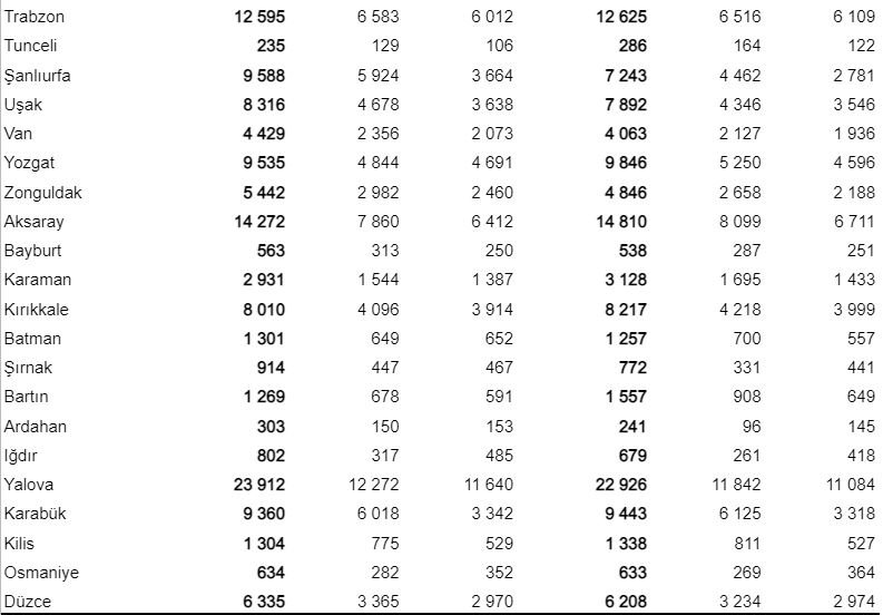 Yabancı nüfusun yaşadığı iller sıralamasında İstanbul ilk sırada yer alıyor. İstanbul’un ardından ise Ankara ve Antalya şehri geldi. En az yabancının yaşadığı şehirler ise Ardahan ve Tunceli oldu.