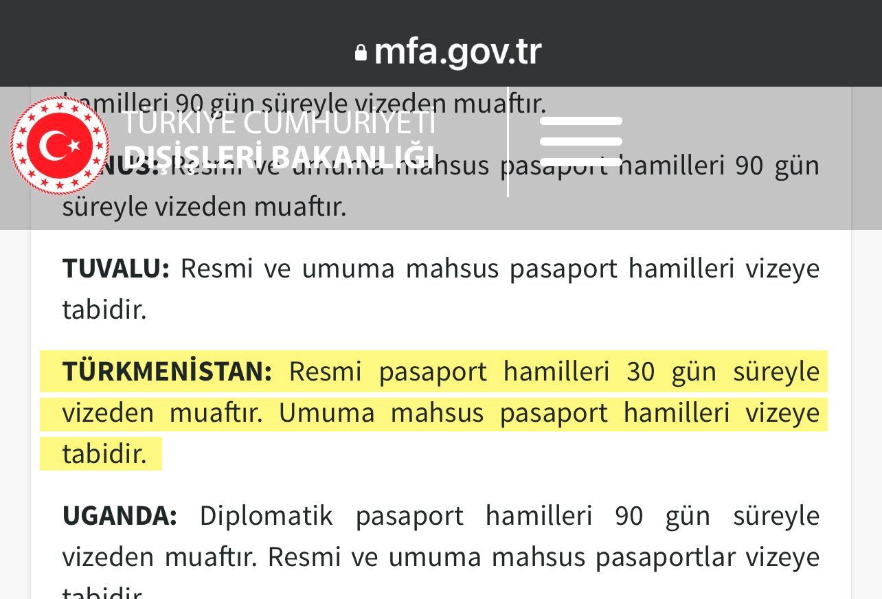 Bu tarihten sonra Türkmenistan vatandaşlarının vizeden muaf olup olmaması ile ilgili kanunen herhangi bir değişiklik olmamıştır. Turkpermit, bu bilgiyi teyid etmek amacı ile Türkiye Dışişleri Bakanlığı sayfasına girerek, Yabancıların tabii olduğu vize rejimi kısmından bu bilgiyi sizler için görüntüledi. Sizlerde https://www.mfa.gov.tr/yabancilarin-tabi-oldugu-vize-rejimi.tr.mfa sayfasını tıklayarak Türkmenistan vatandaşlarının vizeye tabîdir yazısını görebilirsiniz.