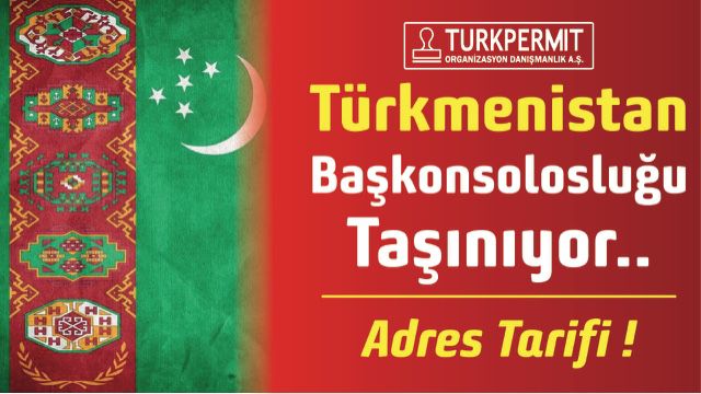 1 Kasım 2021 tarihinden itibaren İstanbul’daki Türkmenistan Başkonsolosluğu yeni adresi ile hizmet vermeye başlayacak. Türkmenistan Başkonsolosluğu’nun yeni adresi Mimar Sinan Mah. Reyhan Sok. No: 14 Eyüpsultan/ İstanbul olarak değişti.