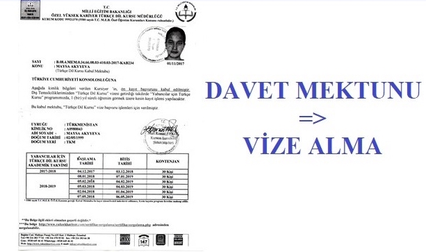 Turkish Language Course ( Türkçe Kursu) ile öğrenci vizesi (1 yıllık) alabilmeniz için Türkçe Kurslarına başvurarak veya Yurt dışından davet mektubu (akseptans) almanız gerekir ”