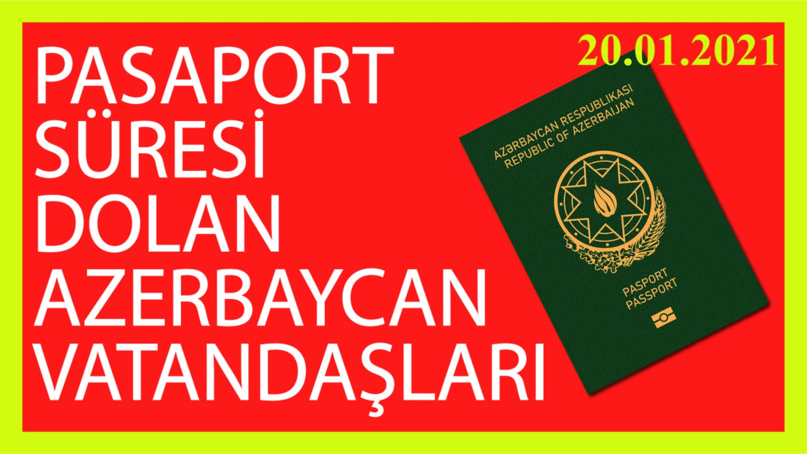 * 01.01.2021 TARİHİNDEN SONRA SÜRESİ DOLAN AZERBAYCAN (DİPOLOMATİK, SERVİS VE UMUMA MAHSUS) PASAPORTLARI 01.07.2021 TARİHİNE KADAR GEÇERLİ SAYILACAKTI.